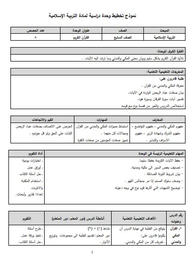 تحضير التربية الإسلامية والتلاوة والتجويد للصف السابع الفصل الأول موقع المتقدمون