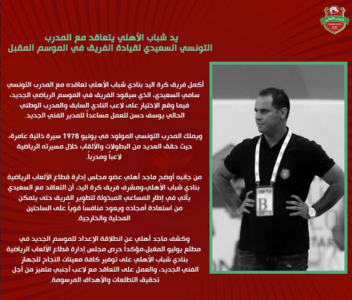 كرة اليد سامي السعيدي مدربا جديدا لنادي شباب الاهلي الاماراتي