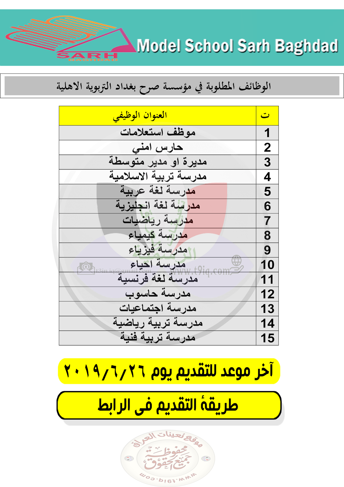 عاجل وظائف شاغرة لكلا الجنسين في مؤسسة صرح بغداد التربوية الاهلية موقع تعيينات العراق