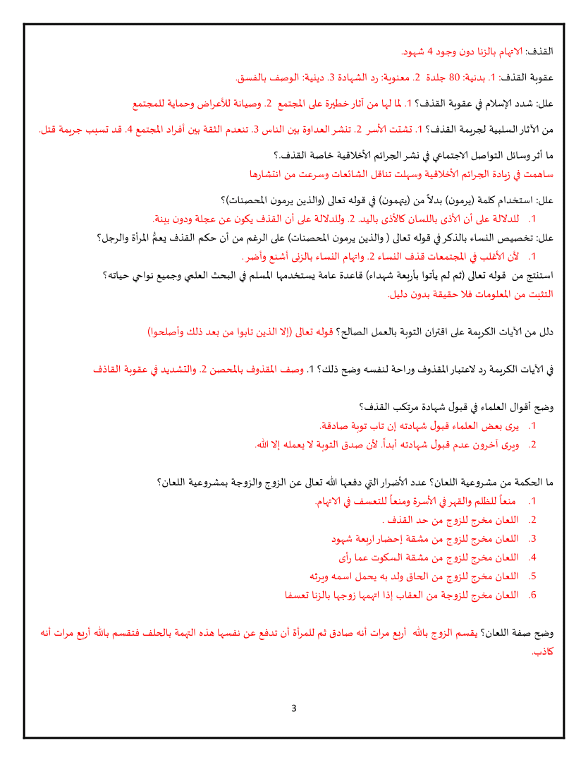 مذكرة مراجعة شاملة لمادة الـتربية الـاسلامية الـصف الـثاني عشر الـفصل الـاول العلوم والتكنولوجيا